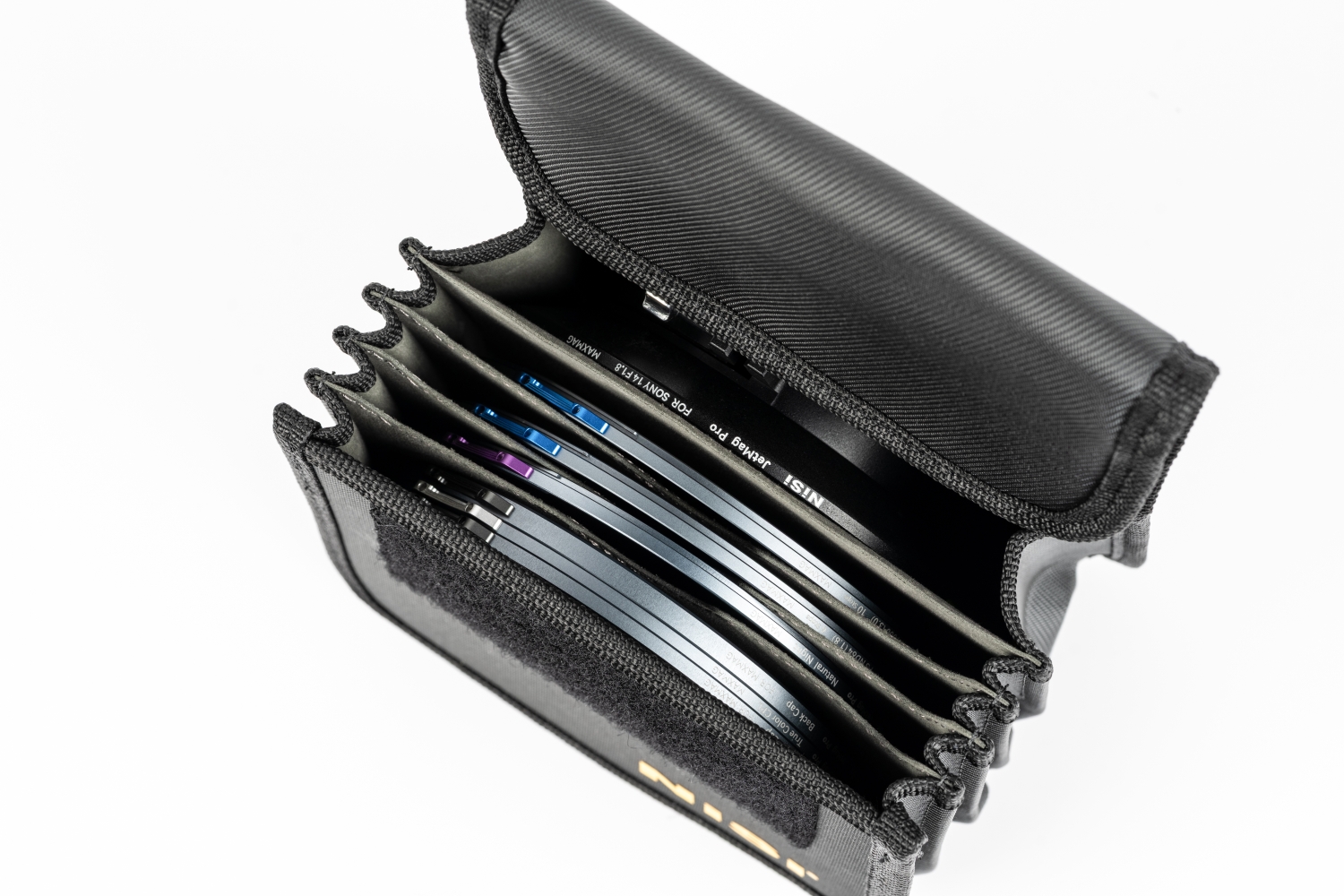 El conjunto se complementa con tapa frontal y trasera magnéticas, que protegen los filtros durante el transporte, y con una bolsa MAXMAG premium, con divisores acolchados tipo acordeón y construcción robusta para organización y protección en campo.